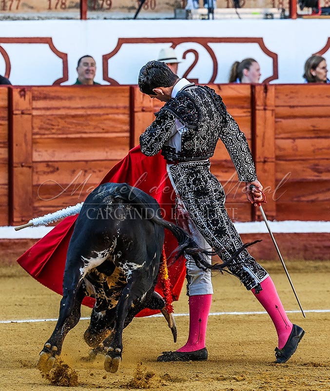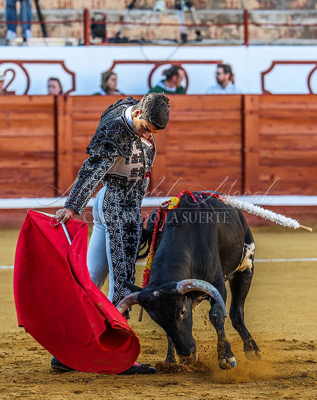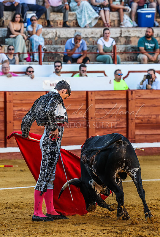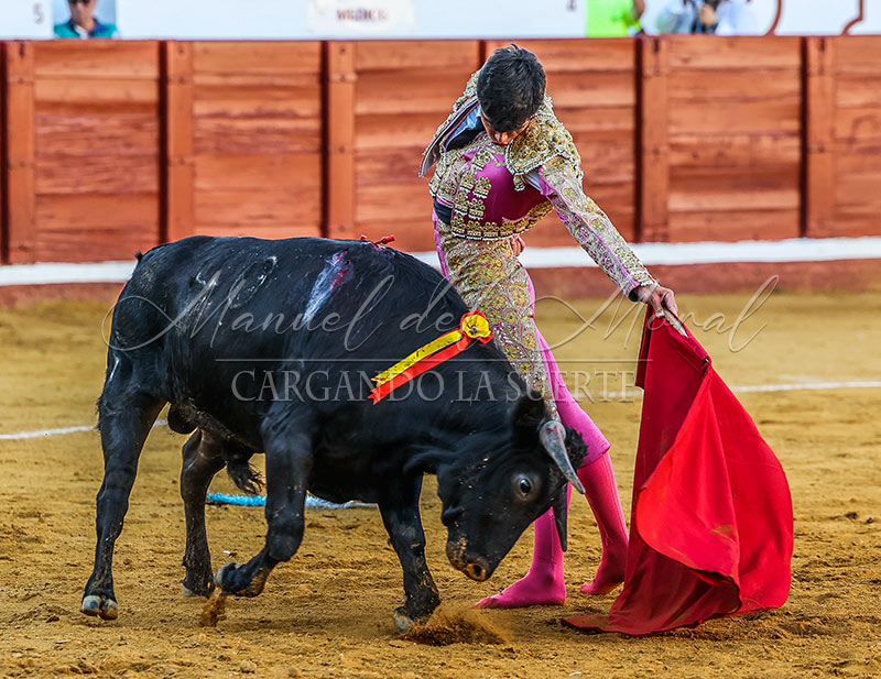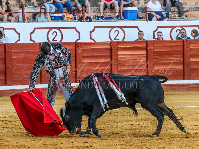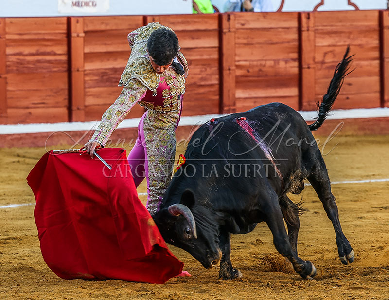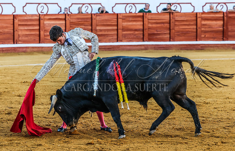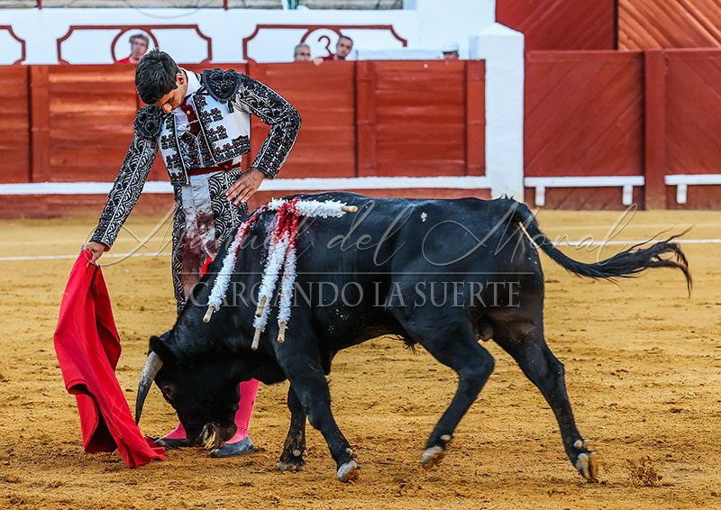 En la labor con la muleta, y tras brindar al público, basó su faena en la suavidad, el temple y la torería que posee de forma innata. Por el pitón derecho llevó al novillo largo, con muletazos muy templados y relajados, llenos de torería por momentos. Por el pitón izquierdo trató de aplicar el mismo concepto, aunque la faena bajó un poco de nivel debido a varias caídas del novillo. Aun así, realizó una faena de bella factura, que culminó bajando la mano por el pitón derecho en una última tanda donde mostró su torería y el temple con el que puede llegar a torear. Lástima que, tras una buena estocada, el novillo tardó en caer y tuvo que descabellar en varias ocasiones, quedando todo en una ovación.
