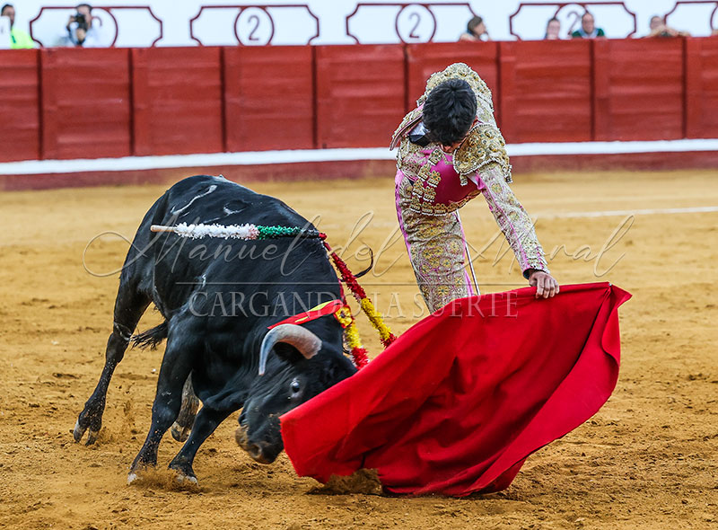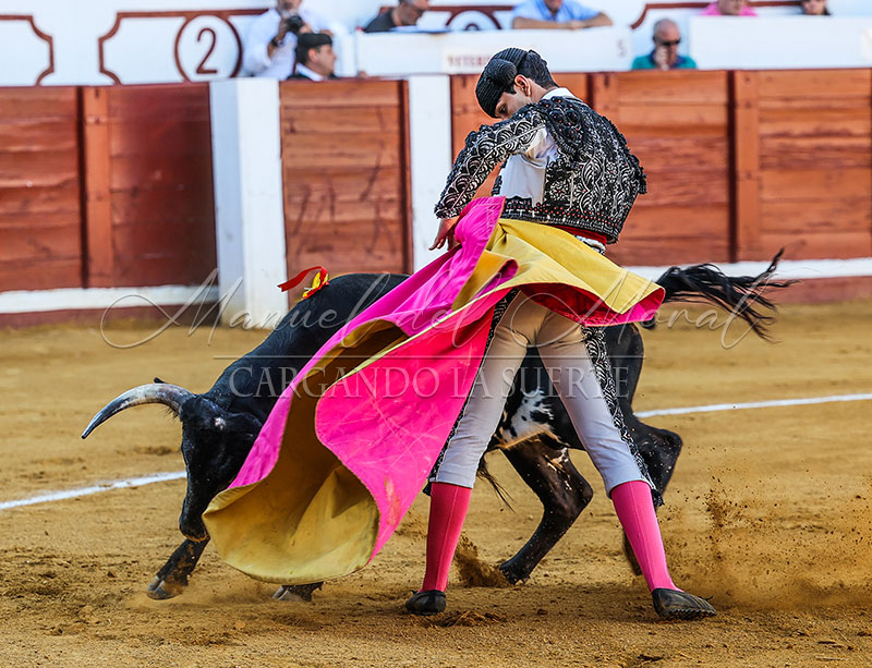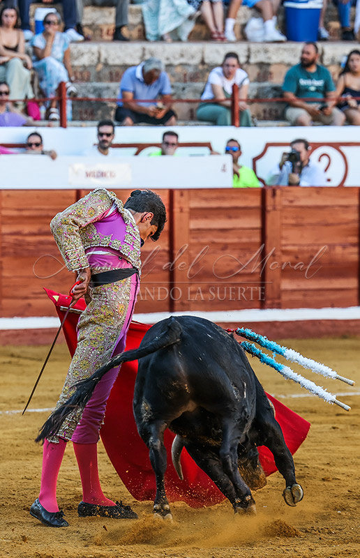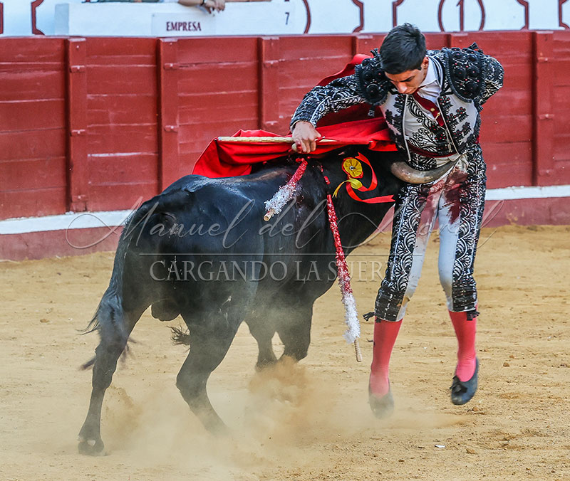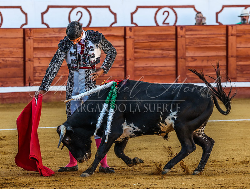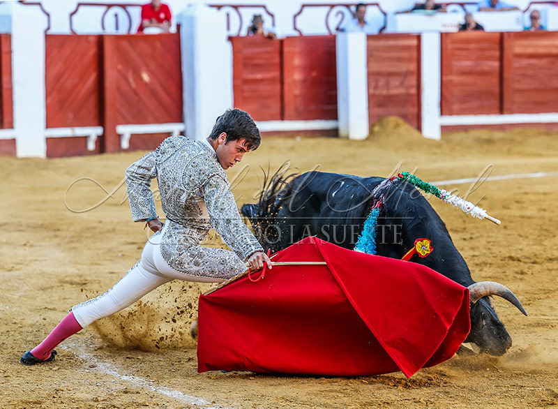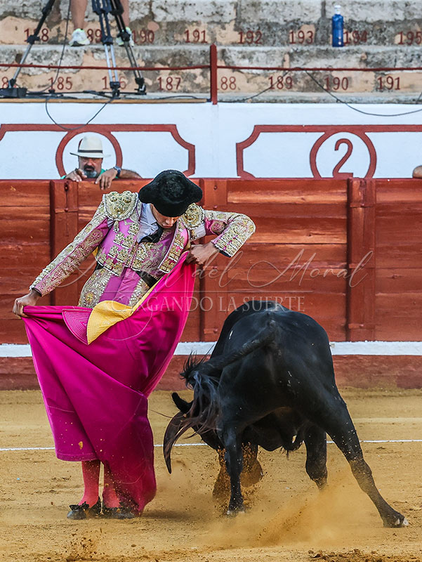 En la labor con la muleta, y tras brindar al público, basó su faena en la suavidad, el temple y la torería que posee de forma innata. Por el pitón derecho llevó al novillo largo, con muletazos muy templados y relajados, llenos de torería por momentos. Por el pitón izquierdo trató de aplicar el mismo concepto, aunque la faena bajó un poco de nivel debido a varias caídas del novillo. Aun así, realizó una faena de bella factura, que culminó bajando la mano por el pitón derecho en una última tanda donde mostró su torería y el temple con el que puede llegar a torear. Lástima que, tras una buena estocada, el novillo tardó en caer y tuvo que descabellar en varias ocasiones, quedando todo en una ovación.