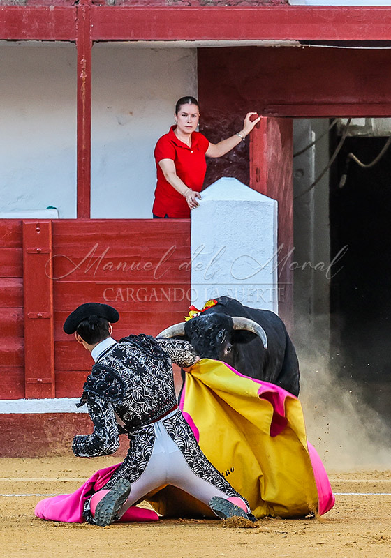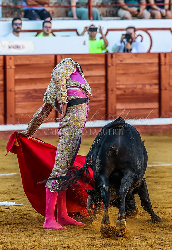 En su segundo novillo, se fue a portagayola y alternó verónicas con chicuelinas muy estéticas para rematar con un recorte. Brindó el novillo al torero de Daimiel, Luis Miguel Vázquez.