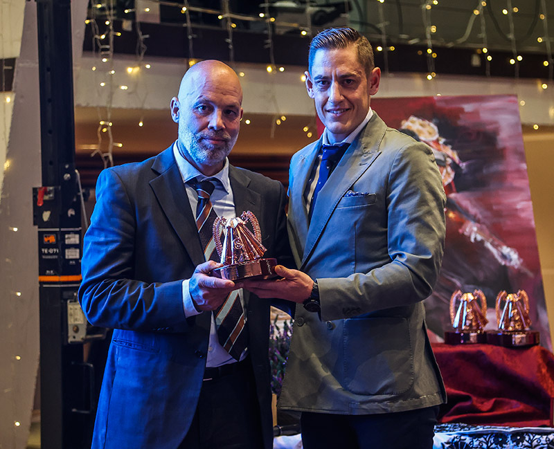Trofeo Honorifico Virgen del Prado en homenaje a Jose Ruiz Baos “Calatraveño”, entrega dicho galardón el Sr. Rafael Alcaide Chico gerente de Viveros Jardimam, recoge dicho trofeo el hijo del Maestro Calatraveño, el Sr. Enrique Ruiz.