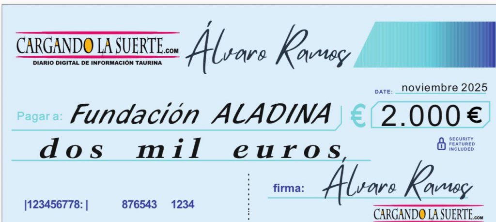 Los aficionados y profesionales del sector presentes en la gala, una vez informados en ese momento del sentido solidario de esta acción, fueron adquiriendo las 20 reproducciones con una prontitud inmediata, resultando muy satisfactorio y emocionante para Cargando la Suerte y Álvaro Ramos, consiguiendo la cantidad de 2.000€ que se ha decidido destinar íntegramente a beneficio de la Fundación Aladina.