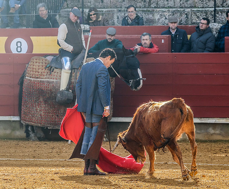 En ese halo de misterio que encierra el campo con la búsqueda de la bravura se fueron sucediendo los encuentros con el picador, que se situó perfectamente en la contra querencia, delimitada en esta ocasión por varias rayas que definían la posición del caballo.