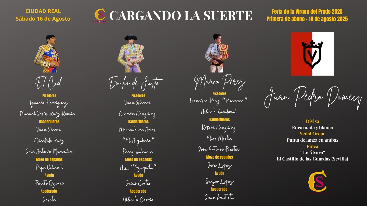 El Cid abrirá la feria en sustitución de Cayetano y De Justo en sazón con la frescura de Marco Pérez, conformarán la segunda de abono finalmente. Lidiarán seis de Juan Pedro Domecq en su regreso a Ciudad Real.