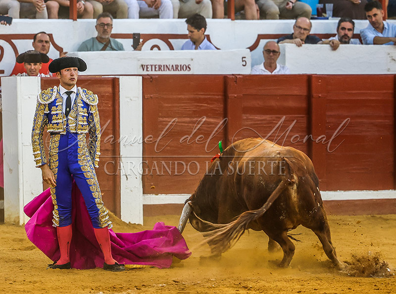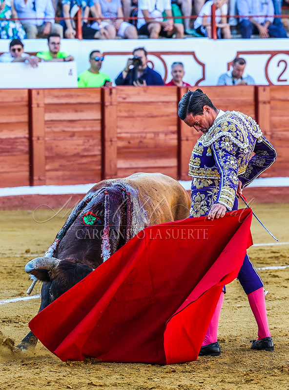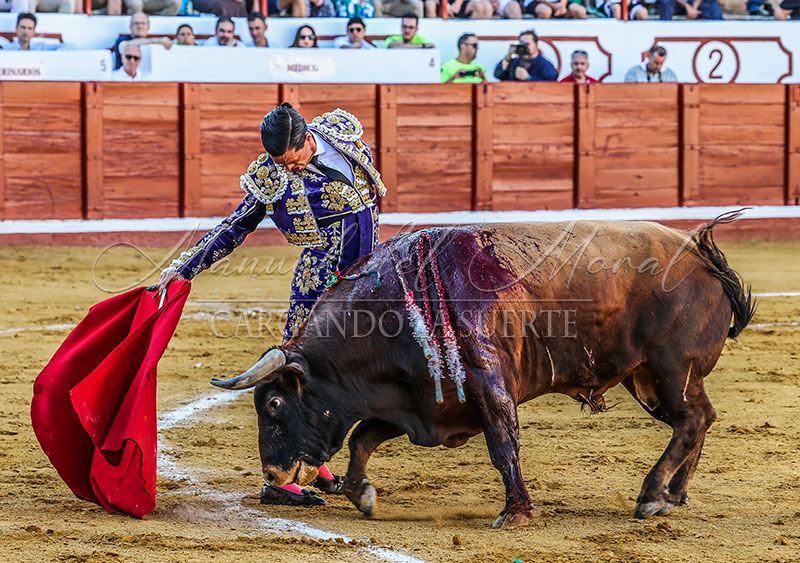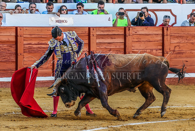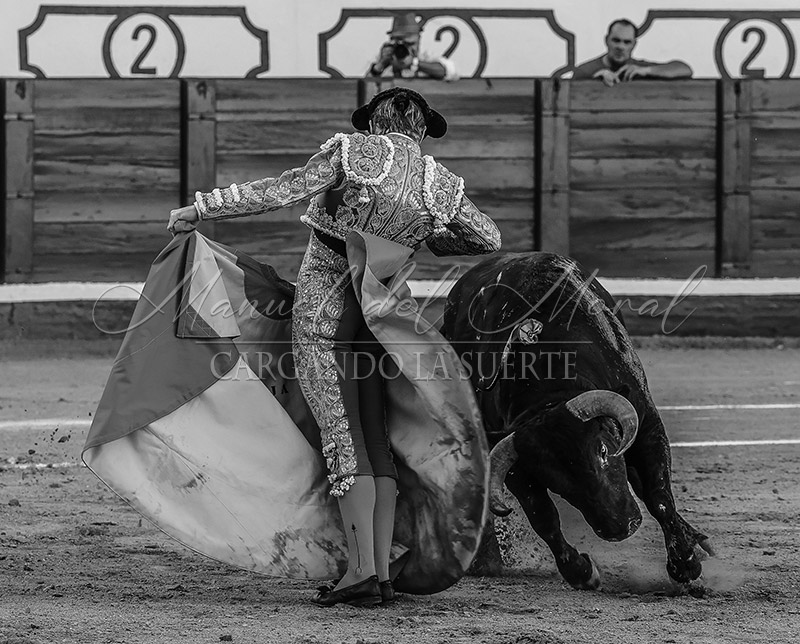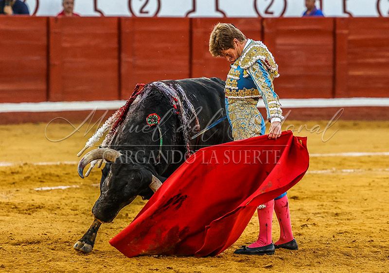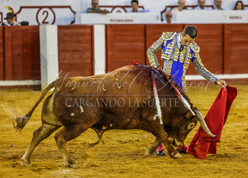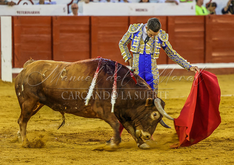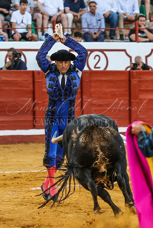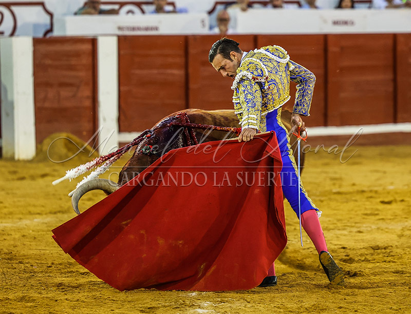A su primero, lo recibió brillantemente con el toreo a la verónica con dos medias inolvidables, un toro que se iba muy suelto de las suertes, de ahí que se terminara picando en terrenos del sol y poniendo en aprietos a su cuadrilla por apretar mucho hacía los adentros. Su faena de muleta la inició con la rodilla genuflexa y lo llevo por las telas con mando y firmeza. En las postrimerías de su labor se metió entre los pitones y tiro de recursos que hicieron subir el tono y la intensidad de la faena, calentando así a los tendidos. Paseó dos orejas tras una buena estocada casi entera.