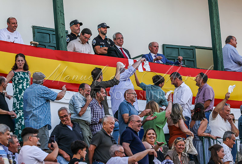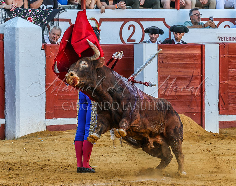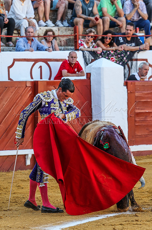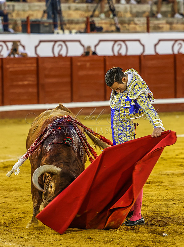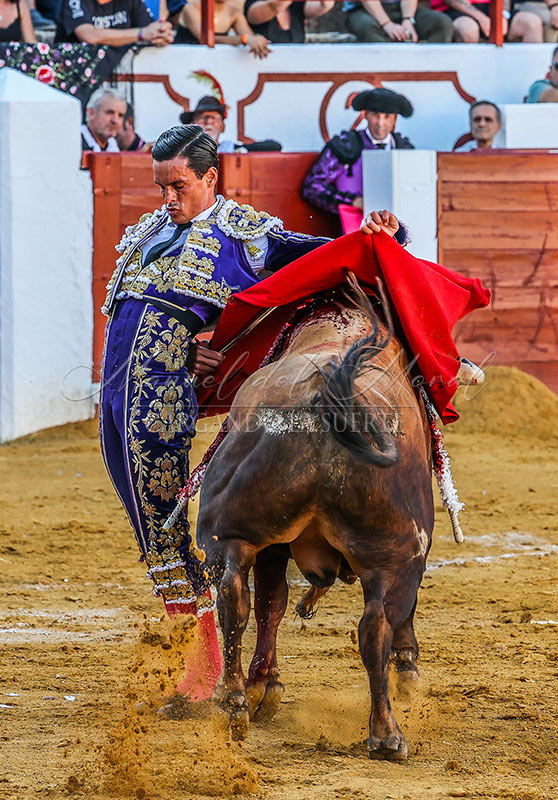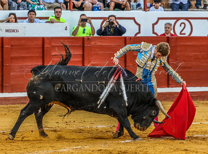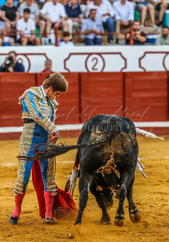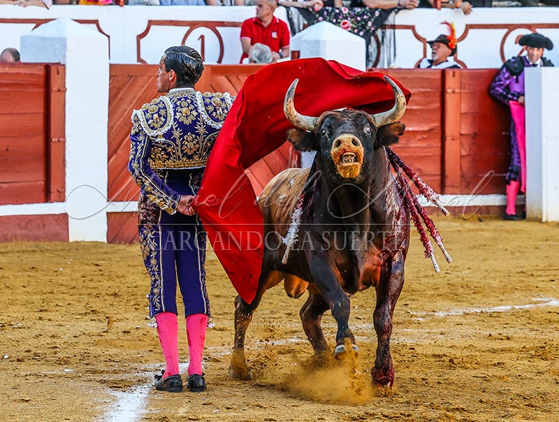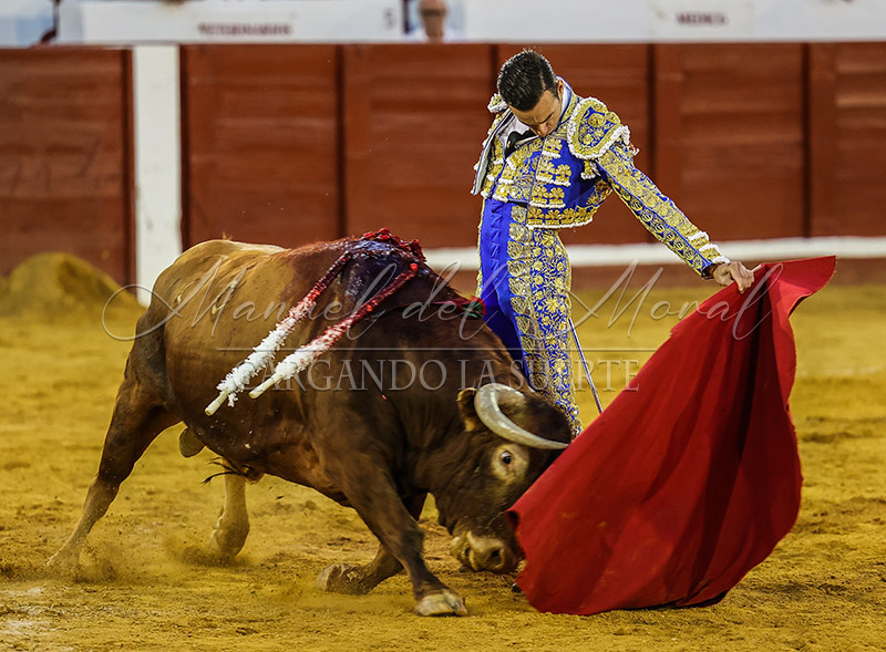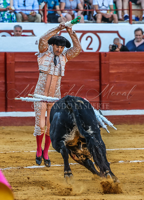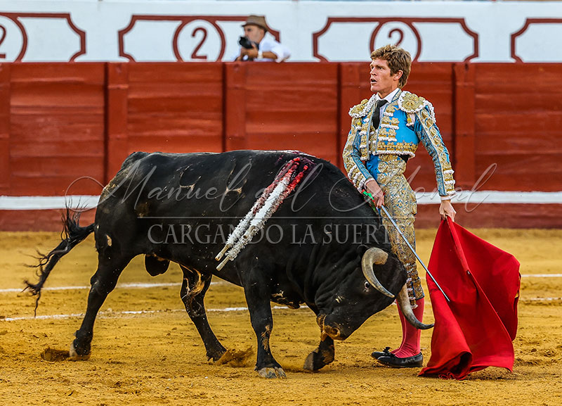 A su primero, lo recibió brillantemente con el toreo a la verónica con dos medias inolvidables, un toro que se iba muy suelto de las suertes, de ahí que se terminara picando en terrenos del sol y poniendo en aprietos a su cuadrilla por apretar mucho hacía los adentros. Su faena de muleta la inició con la rodilla genuflexa y lo llevo por las telas con mando y firmeza. En las postrimerías de su labor se metió entre los pitones y tiro de recursos que hicieron subir el tono y la intensidad de la faena, calentando así a los tendidos. Paseó dos orejas tras una buena estocada casi entera.