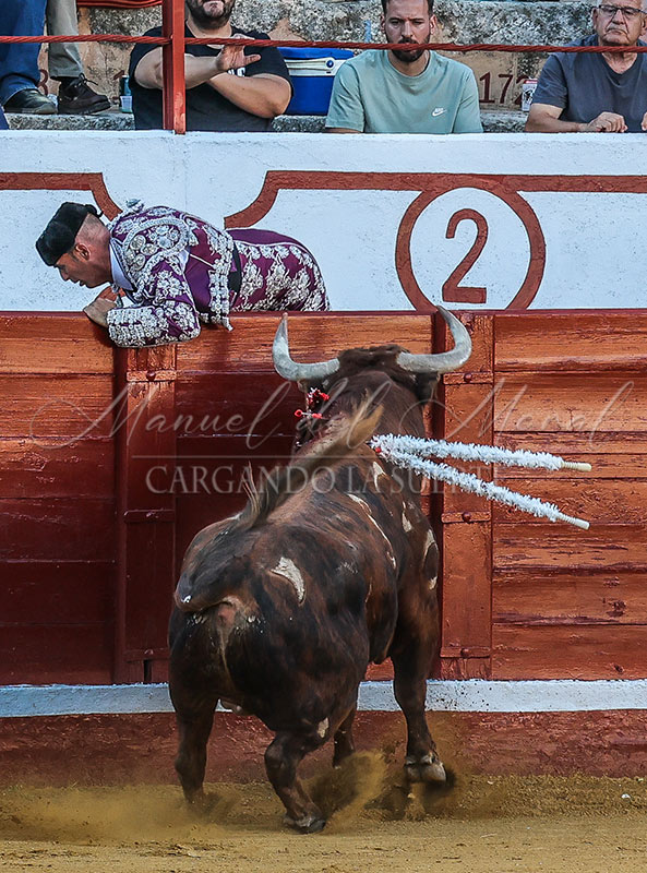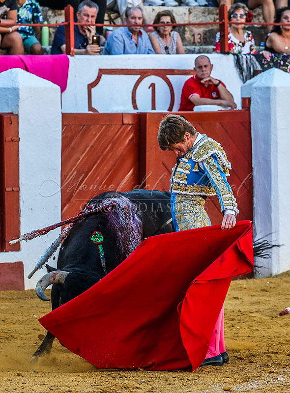 Molina, entro en el cartel por la sustitución de Víctor Hernández, el torero que aunque ya ha recibido el alta hospitalaria, debe de continuar en reposo en su domicilio para terminar de paliar los efectos de la fractura abierta de cráneo y sangrado tras su percance en Torrejón de Ardoz el 21 de junio, al que desde estas líneas le deseamos una pronta recuperación. El torero albaceteño Molina, vino con toda la ilusión a Manzanares porque además reaparecía también en los ruedos tras su cogida en Madrid. No tuvo suerte con el primero de su lote, un toro con poca casta y ciertas complicaciones, aquerenciado en tablas con el que poco pudo hacer. Escucho un aviso tras un metisaca que hizo guardia y un golpe de verduguillo, recibiendo palmas.