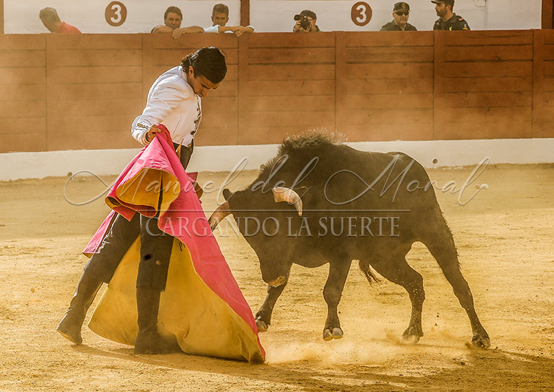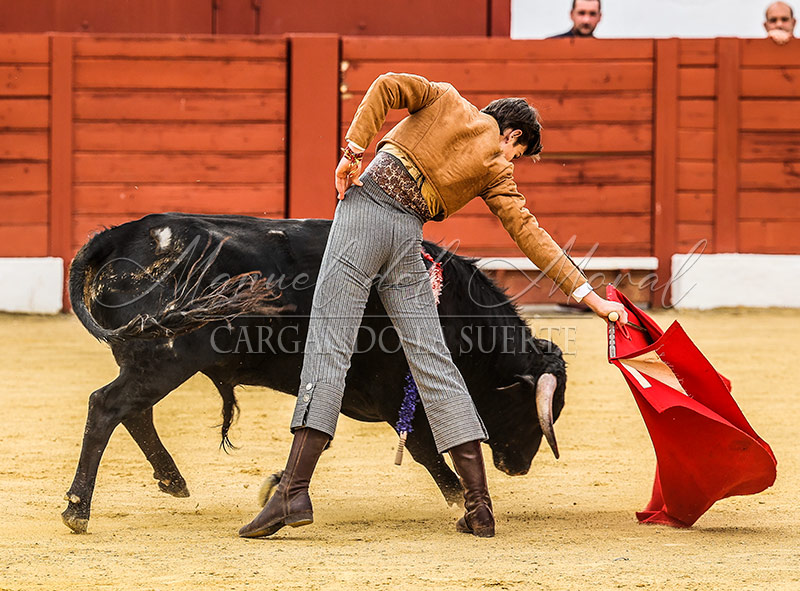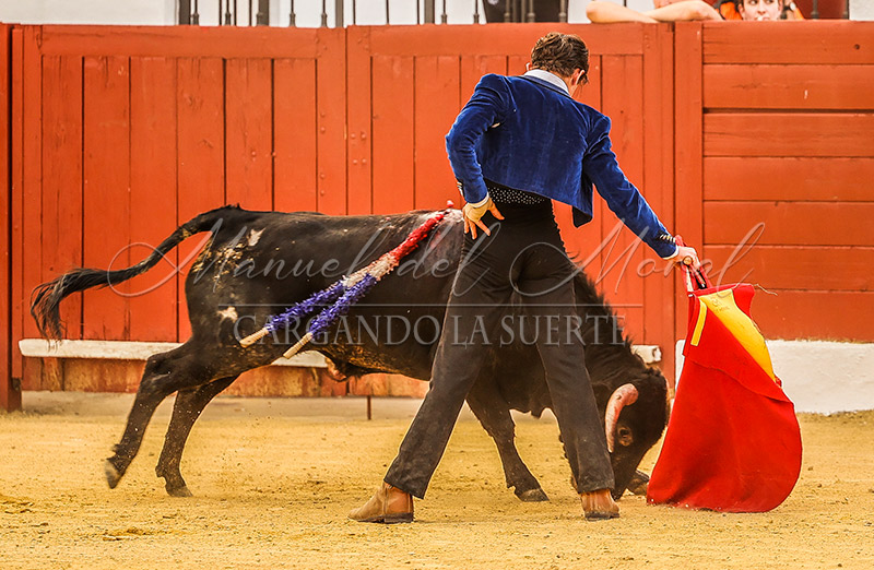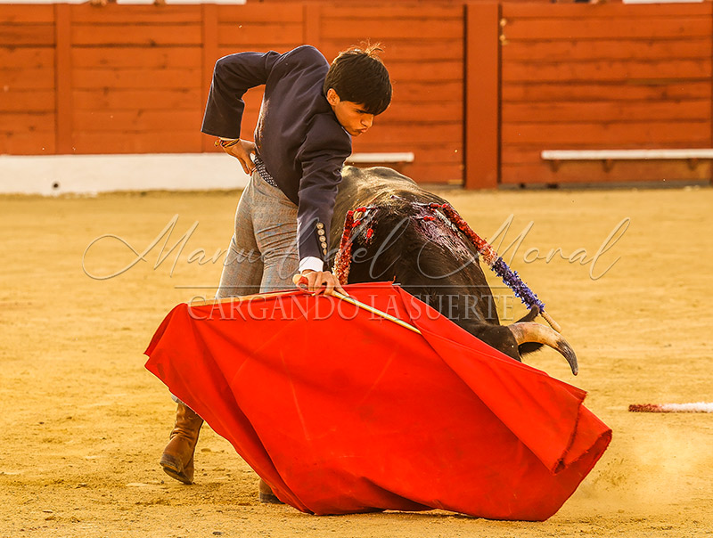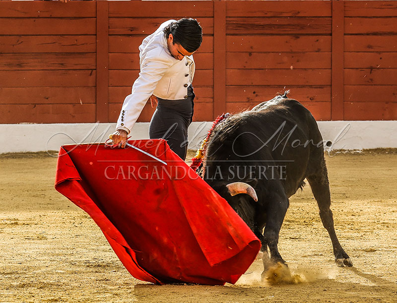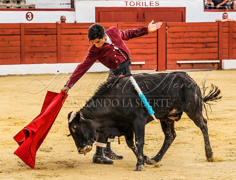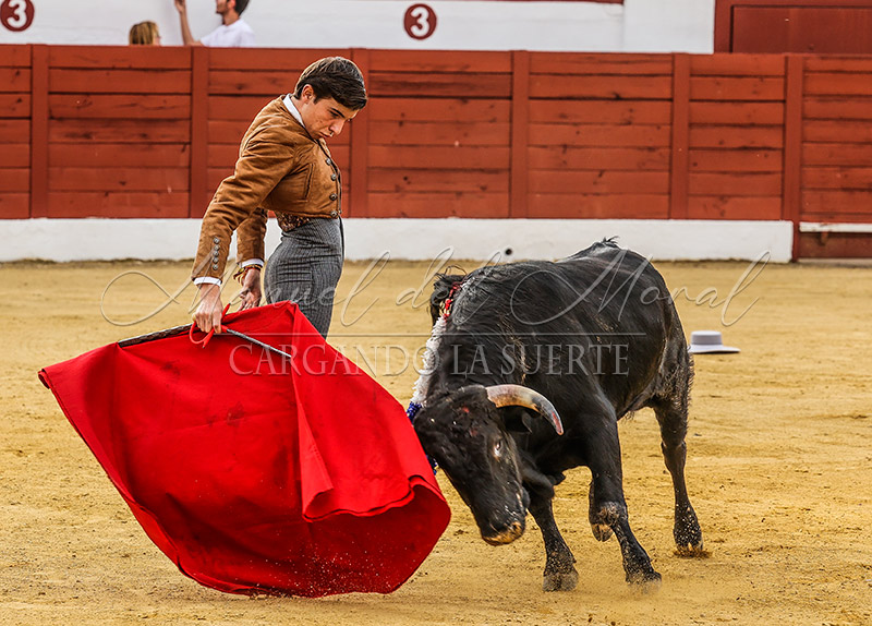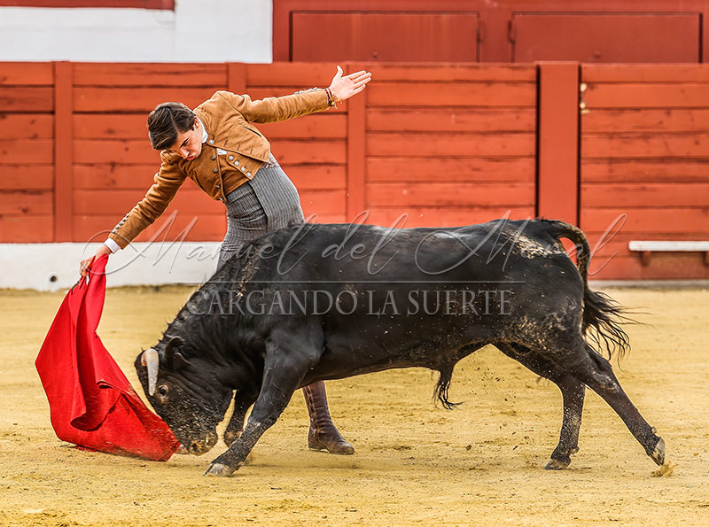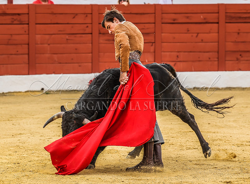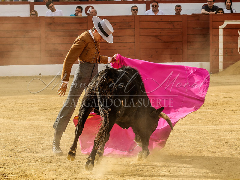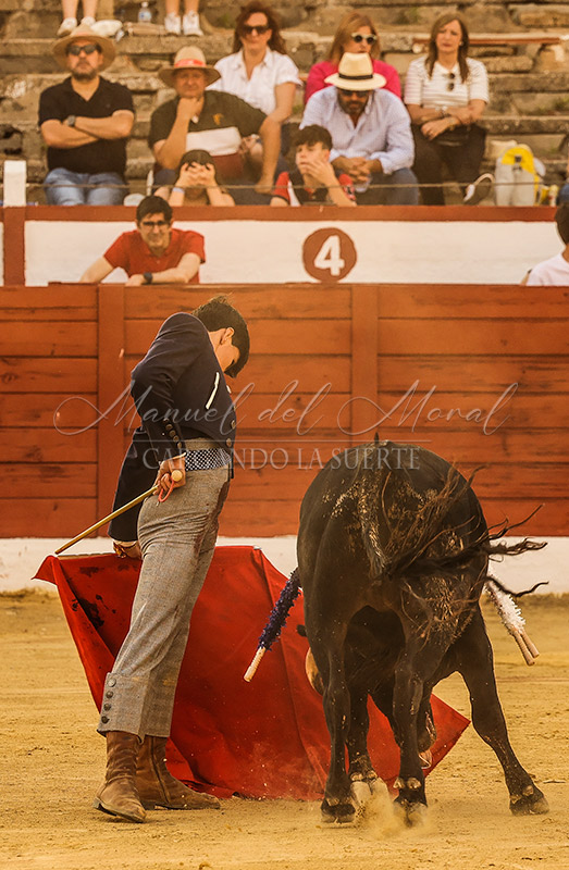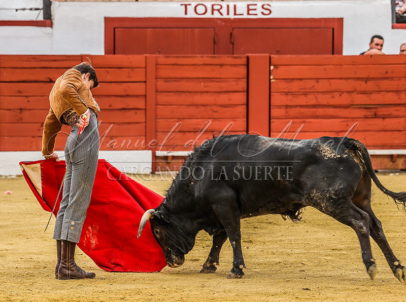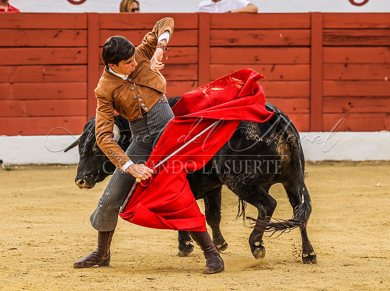 La faena de muleta la inició con muletazos rodilla en tierra muy templados sacándoselo con torería hacia el centro del ruedo. Tenía fijeza y recorrido el novillo y Luis estuvo muy torero, entendiendo los toques y las alturas que necesitaba el animal. Hilvanó muletazos templados y de largo recorrido por el pitón derecho. Por naturales se acopló perfectamente a la embestida del novillo y le ejecutó muletazos limpios, y largos, enganchando con la muleta de adelante a atrás, dando el pecho, destacando siempre los cierres de las tandas con pases muy bonitos para rematar en torero todo lo que hacía. La última tanda por el pitón derecho tuvo estética y empaque toreándo muy despacio. Buen novillo este de Sancho Dávila también aplaudido en el arrastre. Tras el fallo con la espada fue premiado con una oreja, por su faena tan torera y el gusto con el que toreó. Lo de menos son los trofeos, lo importante es la sensación que dejó a los aficionados este novillero de la Escuela Taurina de Ciudad Real. Desde mi punto de vista, en estos festejos de aprendizaje de los chavales, las sensaciones y lo que proyectan en su concepto torero debe pesar mucho más que el manejo con la espada que irán adquiriendo con el paso del tiempo,.