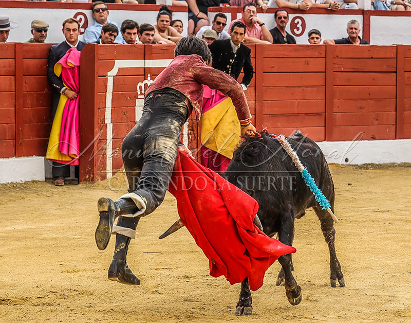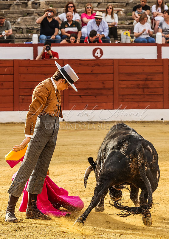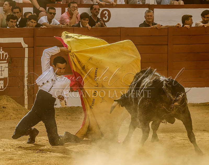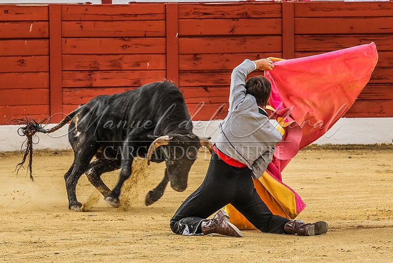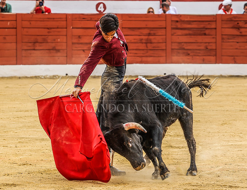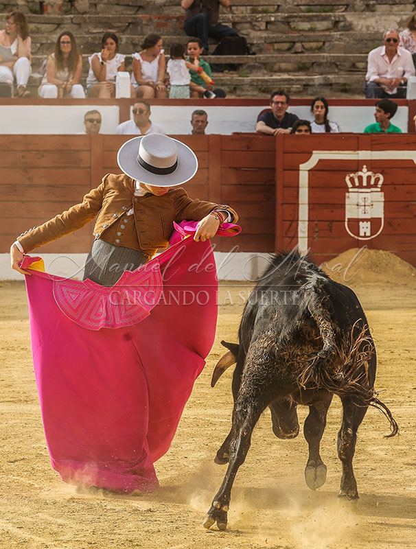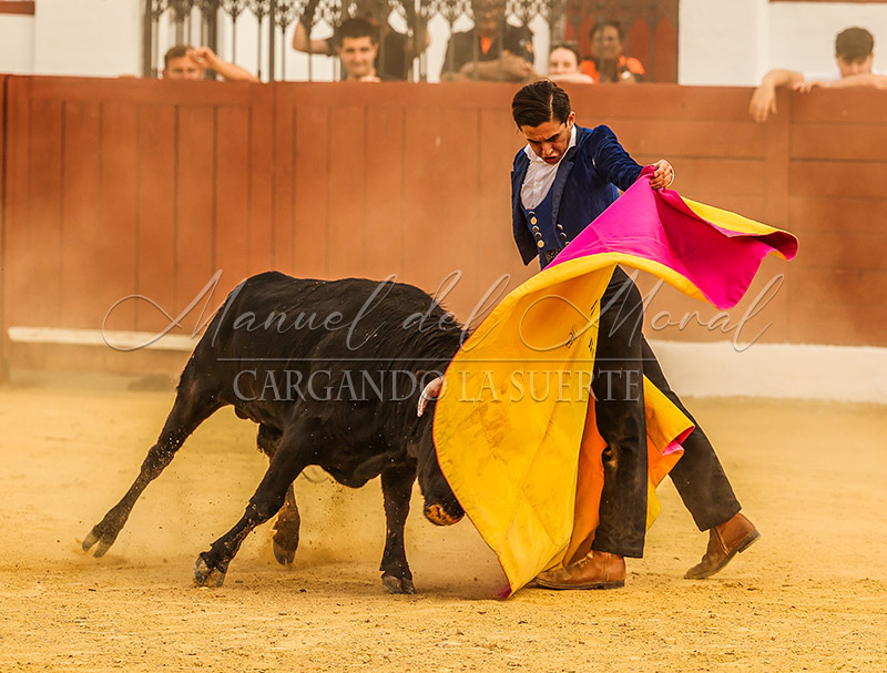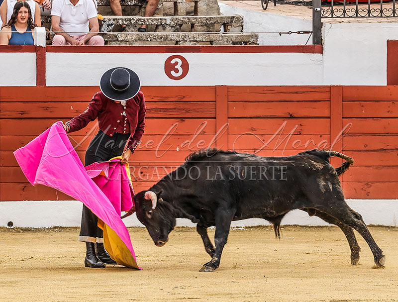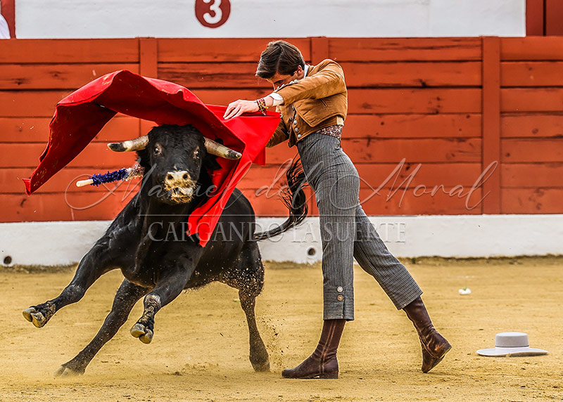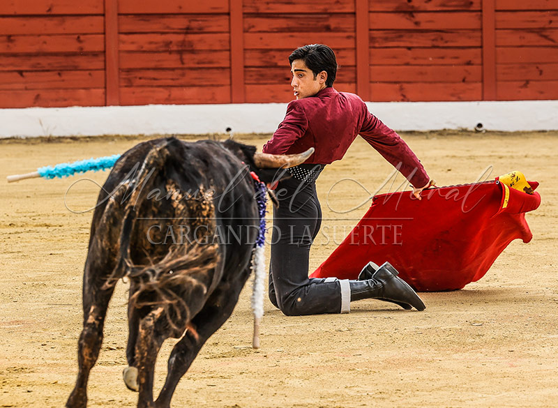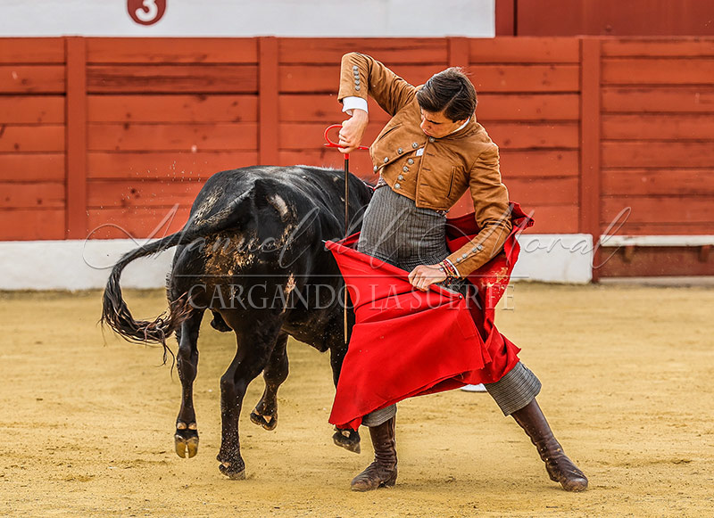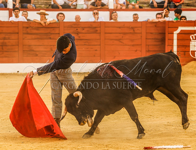La faena de muleta la inició con muletazos rodilla en tierra muy templados sacándoselo con torería hacia el centro del ruedo. Tenía fijeza y recorrido el novillo y Luis estuvo muy torero, entendiendo los toques y las alturas que necesitaba el animal. Hilvanó muletazos templados y de largo recorrido por el pitón derecho. Por naturales se acopló perfectamente a la embestida del novillo y le ejecutó muletazos limpios, y largos, enganchando con la muleta de adelante a atrás, dando el pecho, destacando siempre los cierres de las tandas con pases muy bonitos para rematar en torero todo lo que hacía. La última tanda por el pitón derecho tuvo estética y empaque toreándo muy despacio. Buen novillo este de Sancho Dávila también aplaudido en el arrastre. Tras el fallo con la espada fue premiado con una oreja, por su faena tan torera y el gusto con el que toreó. Lo de menos son los trofeos, lo importante es la sensación que dejó a los aficionados este novillero de la Escuela Taurina de Ciudad Real. Desde mi punto de vista, en estos festejos de aprendizaje de los chavales, las sensaciones y lo que proyectan en su concepto torero debe pesar mucho más que el manejo con la espada que irán adquiriendo con el paso del tiempo,.