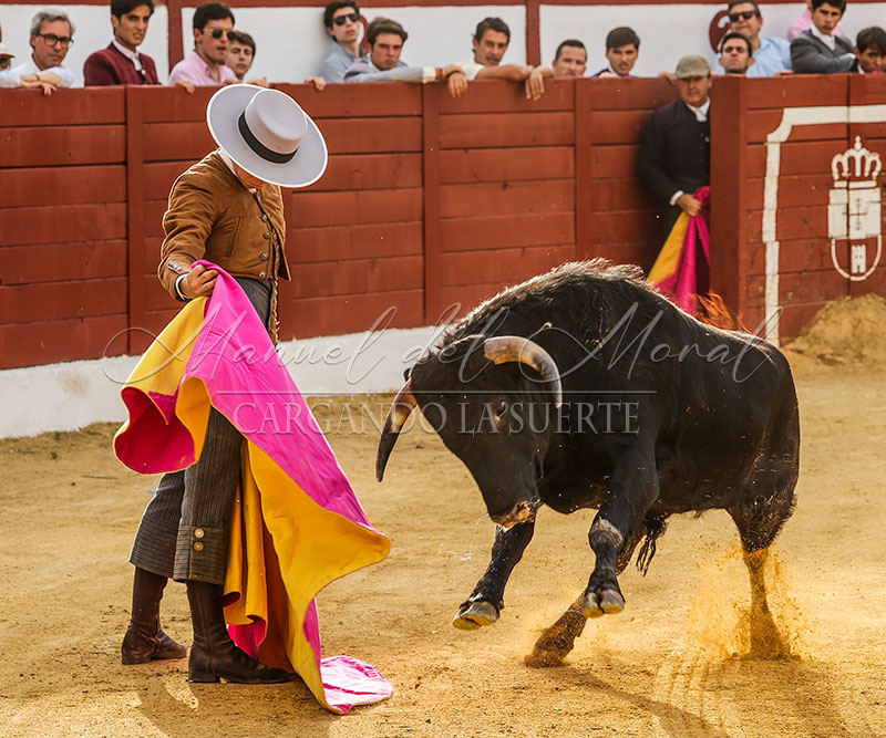 El segundo novillero en lidiar fue Héctor Recuero de la E.T de Ciudad Real, que también recibió a su novillo a portagayola y le recetó un farol y verónicas de correcta ejecución para terminar con una chicuelina.