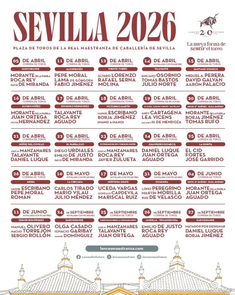 También ha querido destacar la presencia de las máximas figuras como el propio Morante, Roca Rey, Juan Ortega, Pablo Aguado, Borja Jiménez, Daniel Luque, pilares para Sevilla. Además de la oportunidad de dejar un puesto libre en San Miguel”.