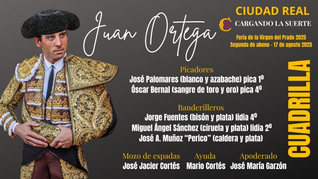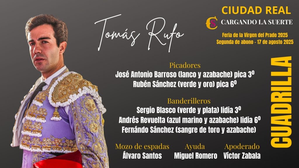 Les ofrecemos el orden de lidia y las cuadrillas que actuarán esta tarde en Ciudad Real.