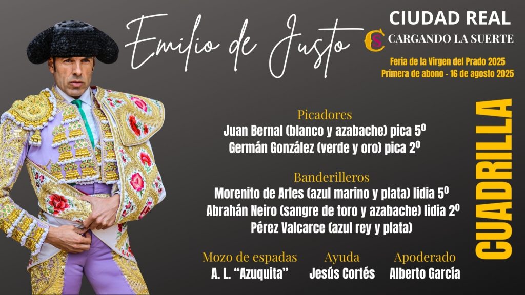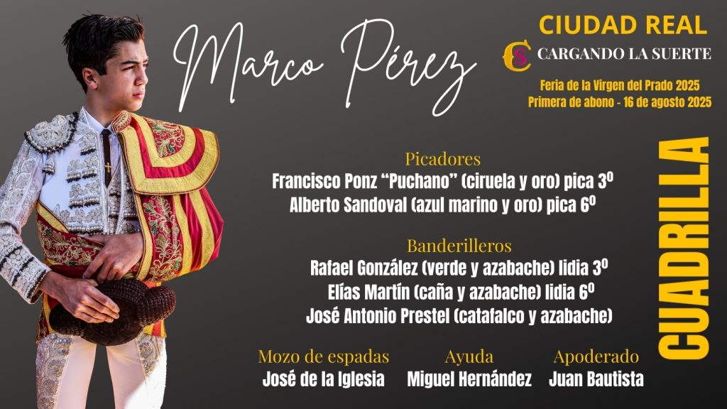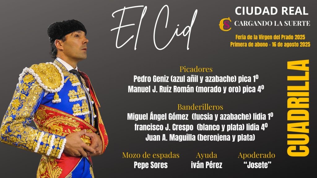 Les ofrecemos el orden de lidia y las cuadrillas que actuarán esta tarde en Ciudad Real.