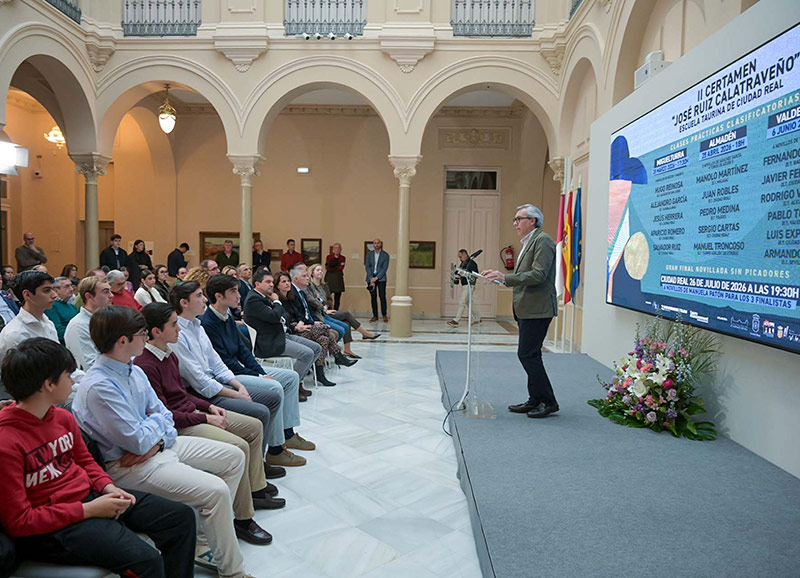 El presidente de la Diputación de Ciudad Real, Miguel Ángel Valverde Menchero, ha presidido esta tarde en el Palacio Provincial el acto de presentación del II Certamen José Ruiz “Calatraveño”, organizado por la Escuela Taurina de Ciudad Real, una iniciativa que vuelve a reunir a jóvenes alumnos de diferentes escuelas taurinas del país en un ciclo de tres clases prácticas clasificatorias y una gran final en forma de novillada sin picadores.