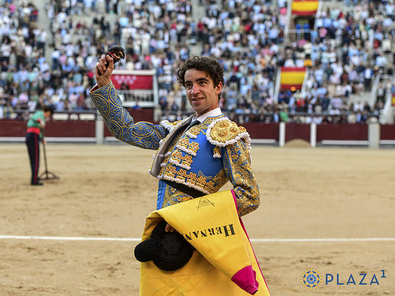 Con la figura erguida y por estatuarios comienza su faena Víctor, el toro muestra justeza de fuerzas y cierta pereza para acudir al engaño y desplazarse hasta el final, pero es ahí donde comienza el mérito que el de Los Santos de la Humosa ha tenido con este de Fuente Ymbro colocándose perfectamente, cruzándose al pitón contrario, templando a la perfección, ofreciendo el medio pecho cuando la ocasión lo requería, dándole la distancia justa y tirando de las embestidas hasta el final y nada de en línea recta, muletazos de trazo curvo. Los naturales no sabría decir cual fue mejor, pues si uno era bueno, el siguiente le superaba aunque fueran de uno en uno, qué verdad había, qué limpieza y pureza, el toro no era así, al toro lo ha hecho él y cuando la espada viaja al primer intento y consigue una estocada con el defectillo de ser un tanto desprendida el público, como un resorte, saca los pañuelos y aunque la petición sigue después de sacar el suyo el Presidente del festejo, este no concede la segunda oreja, con buen criterio, pues desaparecieron bastantes pañuelos en los tendidos. Una oreja, si una solo, pero de auténtica ley y de mucho peso.