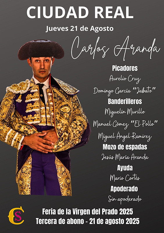 Carlos Aranda es el torero de la tierra anunciado en la feria. El daimieleño volverá a trenzar el paseíllo en la capital, tras un 2.024 en el que cuajó un toro de Manuela Patón, en el festival del día de la provincia, y donde tuvo una seria actuación ante la corrida de Fraile de Valdefresno. En su localidad natal estoqueó con éxito la corrida de Adolfo Martín.