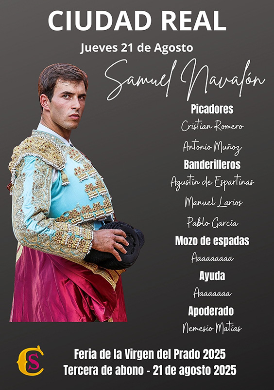 Samuel Navalón ya sabe lo que significa el triunfo en Ciudad Real, donde cortó tres orejas a la novillada de Albarreal con la que se cerró la pasada feria de la Virgen del Prado. Como hecho anecdótico, Navalón cerrará por segundo año consecutivo el serial ciudarrealeño.