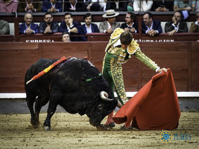 Hoy su lote le ha dado pocas opciones pero él las ha tratado de exprimir al máximo. En su primero inicia la faena por arriba, el toro pide la muleta por abajo, Perera lo ve y consigue varias series de calidad pero con el paso del tiempo el animal empieza a puntear el engaño y la faena no llega a alcanzar las cotas esperadas, se mete en cercanías, estocada trasera, petición minoritaria y saludo desde el tercio es su recompensa.